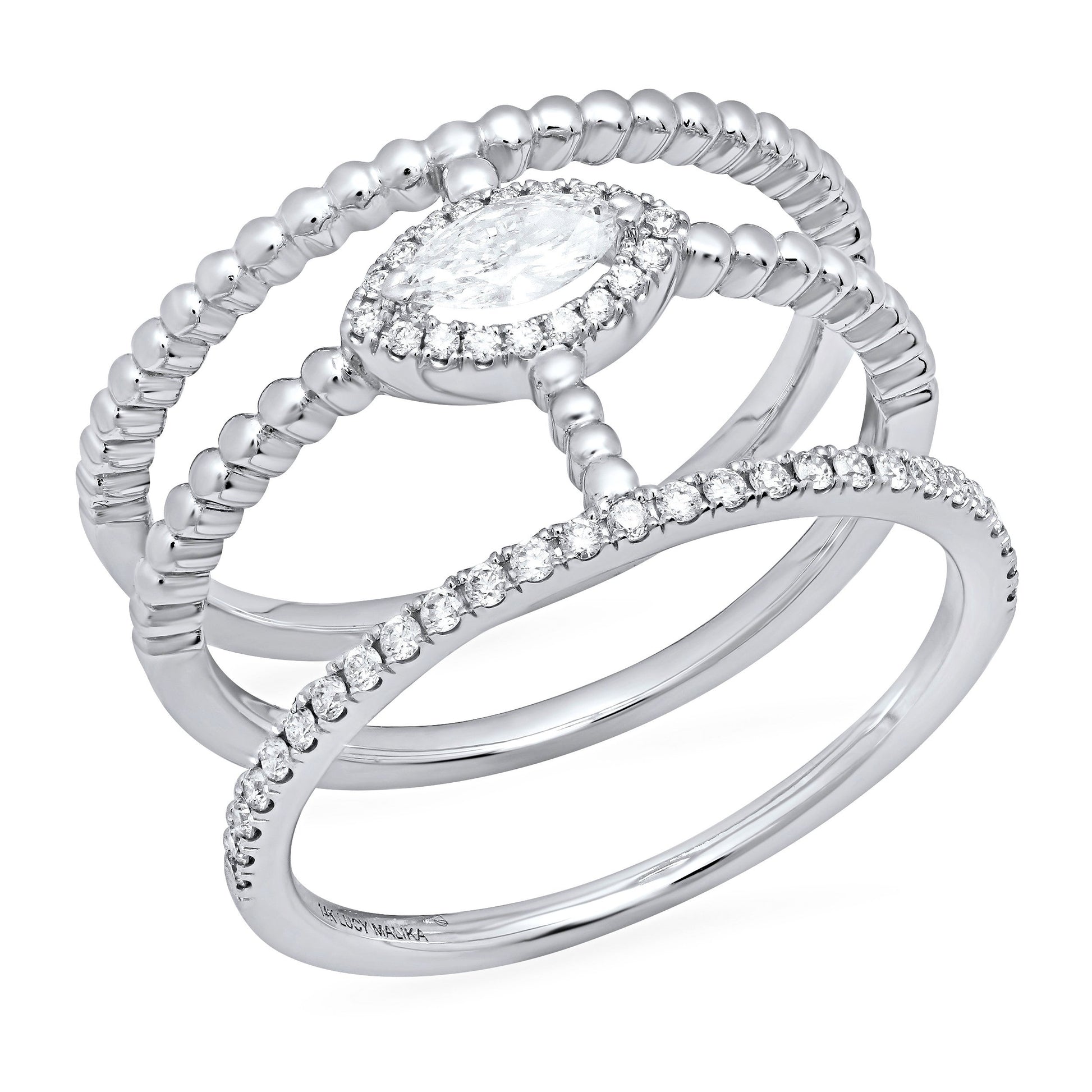 LUCY MALIKA TRIO-BAR NAVETTE RING